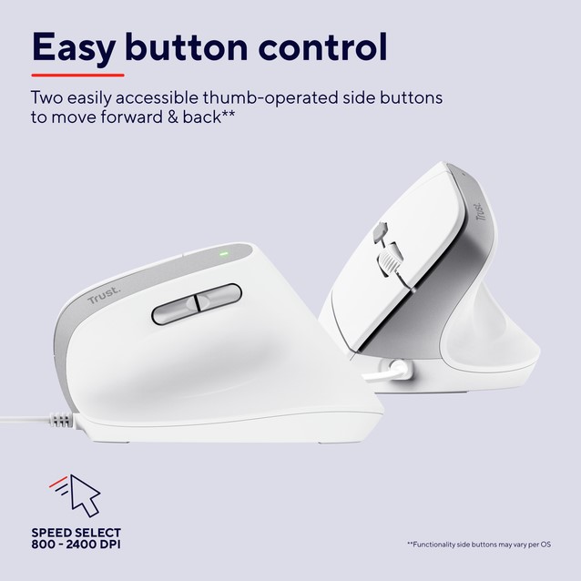 • Ergonomische bedrade muis met optimale verticale hoek die belasting van pols vermindert,