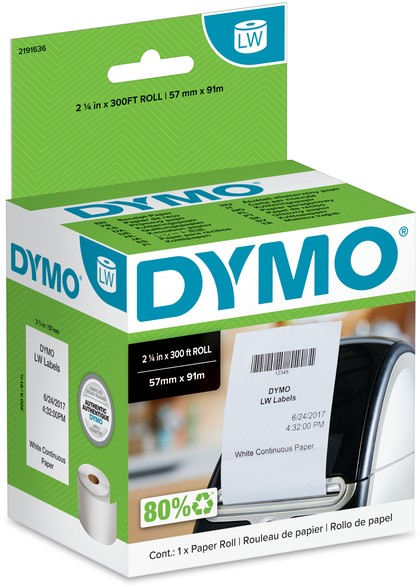 Papierrol Dymo LabelWriter doorlopend 57mmx91m 1 rol wit