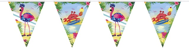 Breng een authentieke tropische sfeer naar je feest met de flamingo vlaggenlijn! Met een kleurrijke ontwerp en levendige toekan-afbeeldingen is deze vlaggenlijn de perfecte decoratie om een ??feestelijke en zomerse sfeer te creëren. Specificaties;Lengte: 10 meter – ideaal om grote en kleine ruimtes mee te versieren.Inhoud: 1 vlaggenlijn – direct gebruiksklaar.Kleur: Meerkleurig – sprankelende kleuren die elk feestje opfleuren.Thema: Flamino – een exotisch thema dat doet denken aan zon, zee en strand.Materiaal: Kunststof – duurzaam en geschikt voor zowel binnen als buiten gebruik.