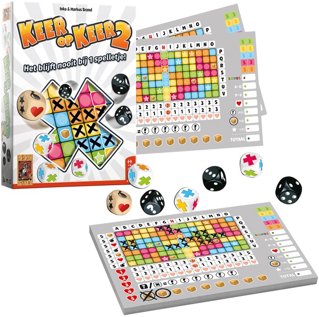 Keer op Keer deel 2! Een nieuwe speciale dobbelsteen en een nieuw scoreblok zorgen voor meer variatie, inclusief diverse en opwindende mogelijkheden. Gebruik bommen en verzamel harten, maar blijf ook opletten dat de rijen worden gevuld! Voor alle Keer op Keer fans een absolute must!