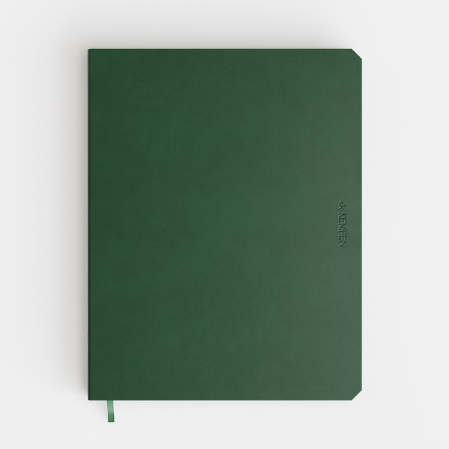 Dit notitieboek is er voor iedereen. Het nodigt uit tot schrijven en schetsen, tot vastpakken en bewaren. Kwalitatief papier voor een ultieme schrijfervaring: geen vegen, dankzij snel absorberend 90 gr/m2 FSC-papier. Voldoende dik, zodat je tekst niet doorschijnt. Glad, voor die zwierige pennenstrook. En crèmekleurig, zacht voor de ogen. Met een soepele en aangename kaft en een speciale binding, waardoor het notitieboek volledig vlak blijft liggen. Ideaal voor wie de volledige breedte wil gebruiken, of voor linkshandigen. Verder is er alleen maar jouw favoriete kleur: kaft, leeslint en papierranden die stralen in frisse, eigentijdse kleuren. De schutbladen zijn echt apart door de gemarmerde motievent. Een notitieboek met een unieke schuine hoek. Pas als iets geschreven staat, is het gebeurd. Wat op papier staat, blijft bestaan. de KEMPEN.° Formaat: 171x220mm, met een zee aan schrijfruimte ° 192 Pagina's crèmekleurig FSC papier, zacht voor de ogen° 90gr FSC-papier, snel absorberend en niet-doorschijnend° Blanco papier met genummerde pagina’s° Volledig vlakliggend door een speciale bindtechniek° Aangename en soepele kaft in PU (polyethyleen)° Kaft, leeslint en papierranden in de kleur Origin (groen)° Met aangepaste schutbladen in marmerpapier° Unieke schuine hoekjes