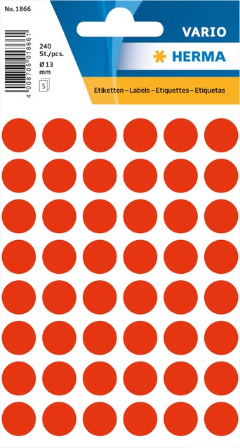 Etiket HERMA 1866 rond 12mm fluor rood 240stuks