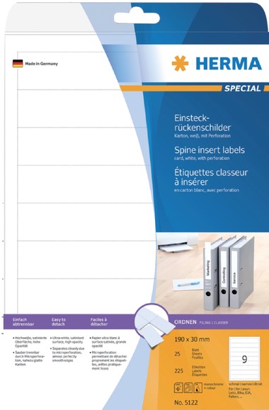 Rug-insteekkaart HERMA 5122 smal 30x190mm wit 25 vel