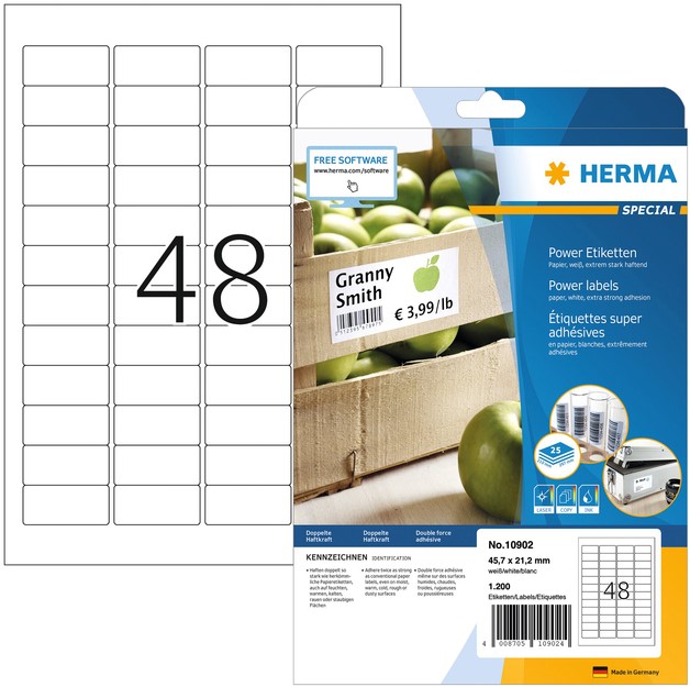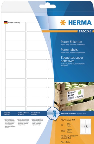 Etiket HERMA Power 10902 45.7x21.2mm wit 1200stuks
