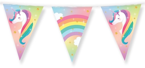 Een kinderfeestje kan niet zonder vlaggetjes en als je deze party flags foil Unicorn koopt dan haal je direct een vlaggenlijn met een uniek thema in huis! De vlaggetjes zijn gemaakt van folie en de vlaggenlijn is 10 meter lang. De vlaggenlijn kan gecombineerd worden met de overige leuke feestversiering en tafeldecoratie met hetzelfde thema. Je hebt direct alles in huis om het feestje tot een succes te maken.