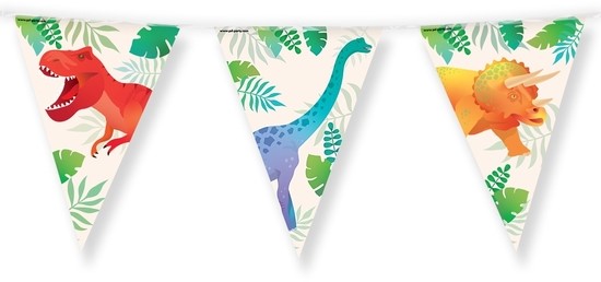 Een kinderfeestje kan niet zonder vlaggetjes en als je deze party flags foil Dino koopt dan haal je direct een vlaggenlijn met een uniek thema in huis! De vlaggetjes zijn gemaakt van folie en de vlaggenlijn is 10 meter lang. De vlaggenlijn kan gecombineerd worden met de overige leuke feestversiering en tafeldecoratie met hetzelfde thema. Je hebt direct alles in huis om het feestje tot een succes te maken.
