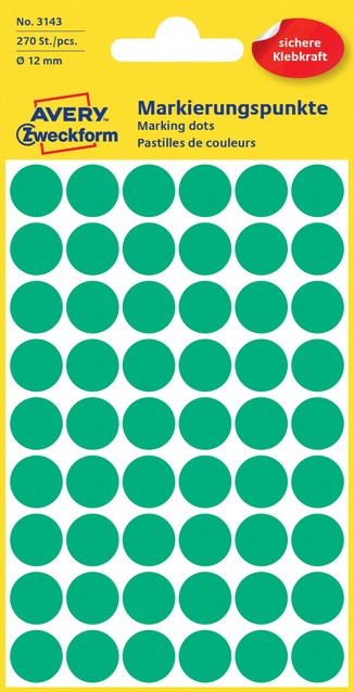 Etiket Avery Zweckform 3143 rond 12mm groen 270 etiketten