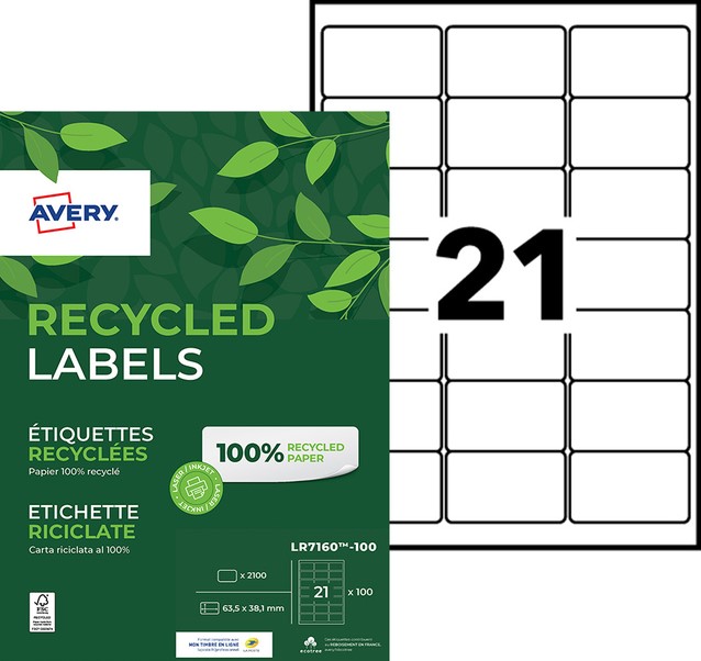 Etiket Avery LR7160-100 63.5x38.1mm recycled wit 2100 etiketten