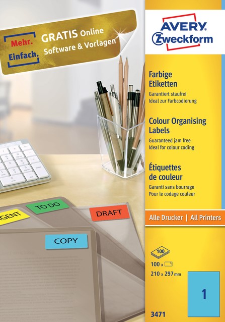 Etiket Avery Zweckform 3471 210x297mm A4 blauw 100stuks