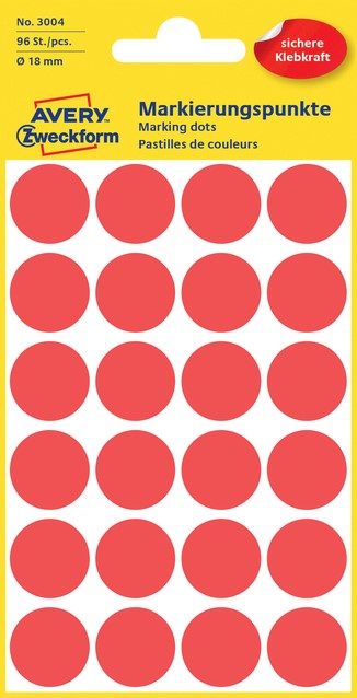 Etiket Avery Zweckform 3004 rond 18mm rood 96 etiketten