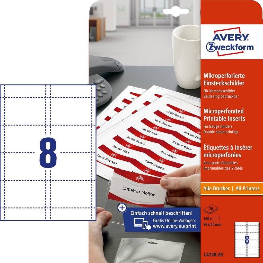 Badgekaart Avery L4728-20 60x90mm microperforatie 20 vel