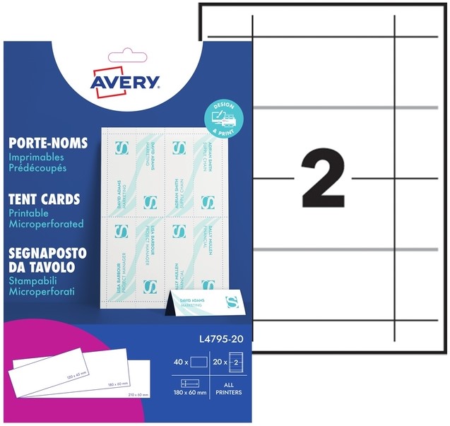 Tafelnaambord Avery L4795-20 180x60mm wit 20 stuks