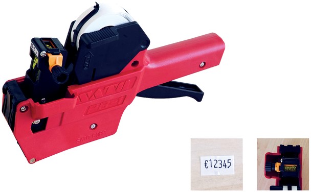 • Eenvoudige etiketteertang van slagvast kunststof.