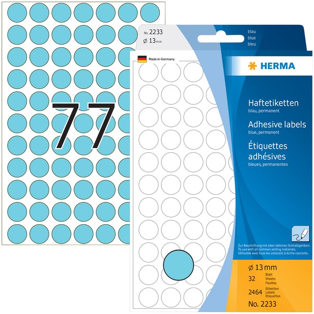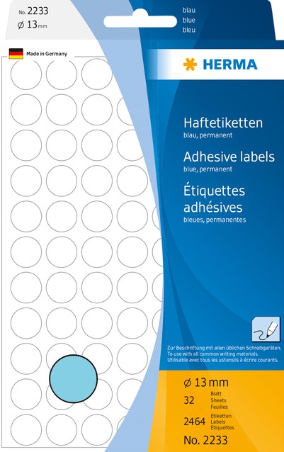Etiket HERMA 2233 rond 13mm blauw 2464stuks