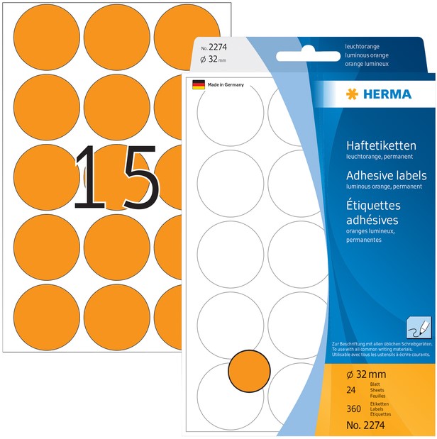 Etiket HERMA 2274 rond 32mm fluor oranje 360stuks