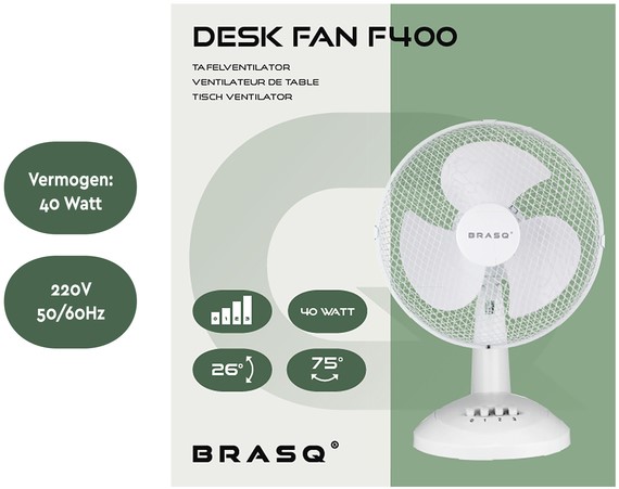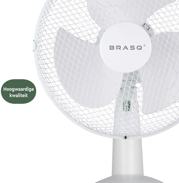 • De BRASQ Tafelventilator zorgt gegarandeerd voor een aangenaam briesje. Het compacte en draagbare formaat, slechts 3,4 kg, maakt deze ventilator overal inzetbaar. Steek de stekker in het stopcontact en aangename verkoeling wordt meteen in gang gezet. Geniet van een directe verfrissing, zelfs op de warmste dagen.