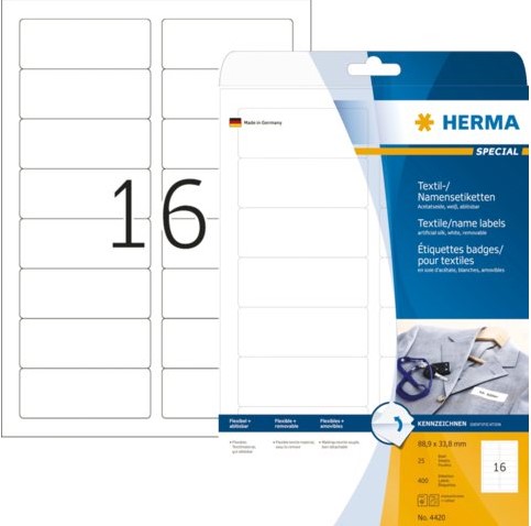 Badge etiket Herma 4420 bedrukbaar 88.9x33.8mm wit 400st