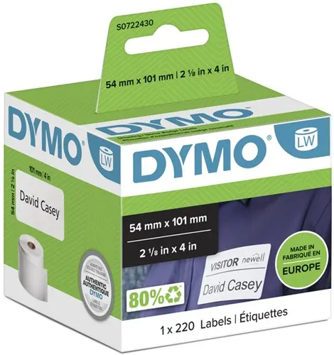 Etiket Dymo LabelWriter naamkaart 54x101mm 1 rol á 220 stuks wit