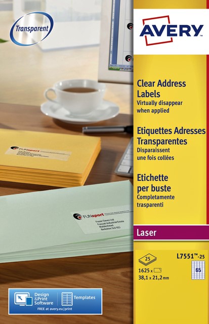 Etiket Avery L7551-25 38.1x21.1mm transparant 1625 etiketten