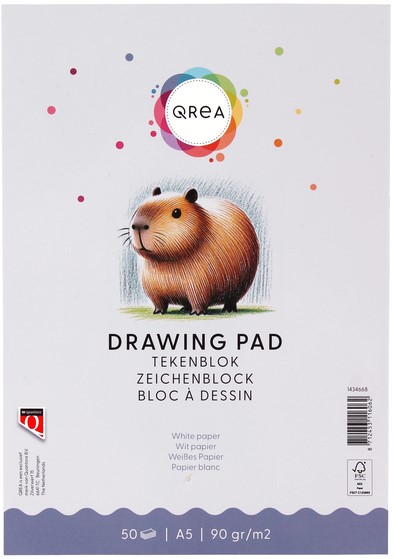 • Ontdek het veelzijdige Tekenblok Qrea A5, perfect voor al jouw creatieve projecten. Met 100 pagina’s van 90 grams papier is dit tekenblok ideaal voor schetsen, tekeningen en snelle notities. De gelijmde bindwijze zorgt ervoor dat je eenvoudig pagina’s kunt uitscheuren zonder het blok te beschadigen. Dankzij de harde kartonnen achterkant heb je altijd een stevige ondergrond, waar je ook werkt. Dit FSC-gecertificeerde tekenblok is duurzaam geproduceerd en beschikbaar in diverse maten, zodat het altijd aansluit bij jouw artistieke behoeften.Kenmerken: