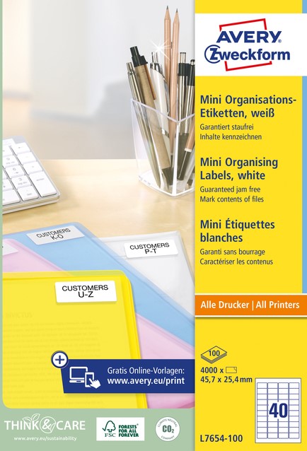 Etiket Avery L7654-100 45.7x25.4mm wit 4000 etiketten