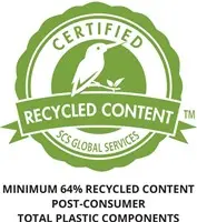 • Gecertificeerd gerecycled materiaal dat voldoet aan de SCS Recycled Content Standard V8-0 voor minimaal 64% post-consumer recycled content van de totale plastic onderdelen en geleverd in verpakkingen die zijn gecertificeerd door de Forest Stewardship Council (FSC®).