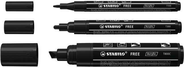 Acrylmarker STABILO Free Acrylic Mixed Tip set à 3 breedtes zwart