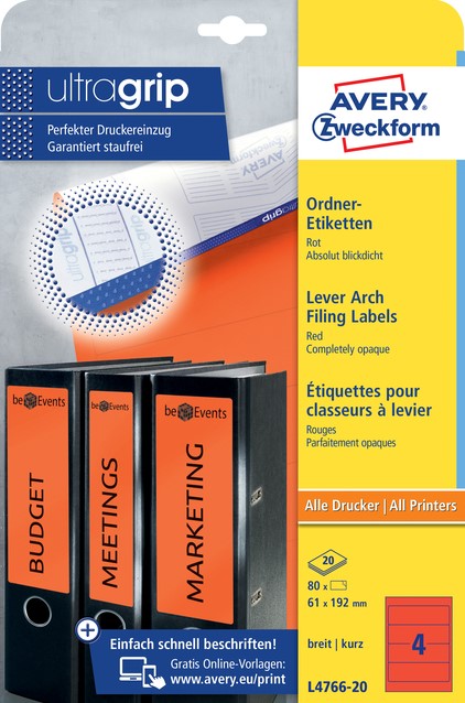• Avery ordneretiketten schijnen niet door (BlockOUT).