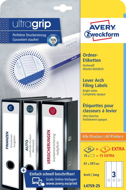 • Avery ordneretiketten schijnen niet door (BlockOUT).