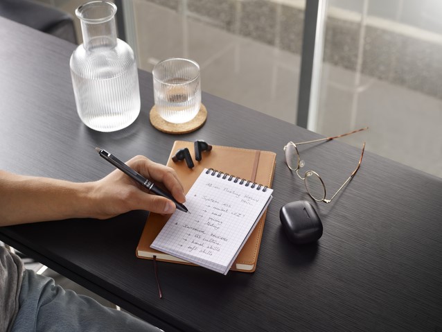 • Elegant met zijn matzwarte ontwerp en comfortabel met zijn ergonomische driehoekige vorm.