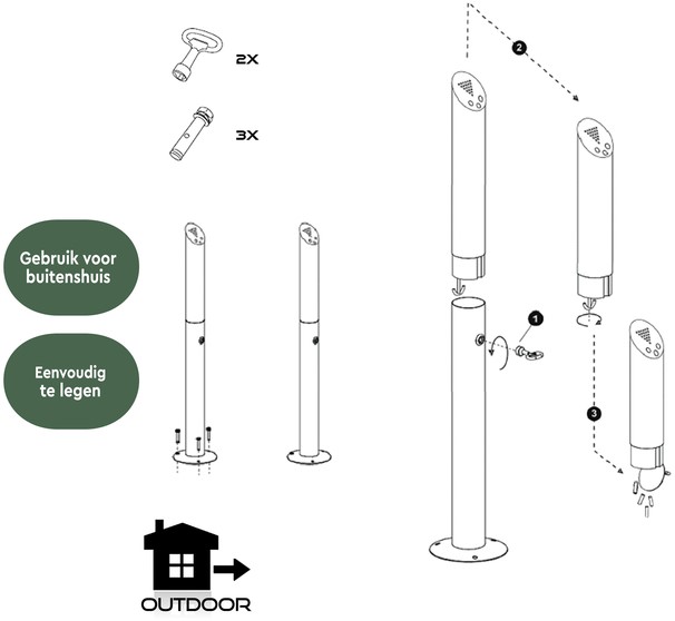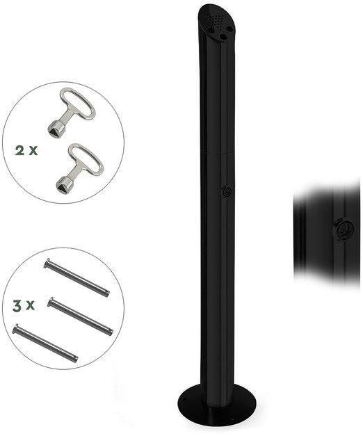 • De zuil is zeer eenvoudig te legen. De staande asbak van BRASQ vangt de peuken op in het onderste gedeelte van de kolom. Door deze constructie, is er een beperkte zuurstof toevoer en doven de peuken snel. Dit komt de veiligheid van gebruiker en omgeving ten goede. Door het klepje onderaan met de sleutel te openen kun je de inhoud gemakkelijk legen. Sluit de asbak vervolgens weer met de sleutel. Tot slot, de asbak is geschikt voor iedereen die op een professionele wijze de sigarettenpeuken wilt opvangen, waardoor de werk- en leefomgeving opgeruimd en schoon blijft.