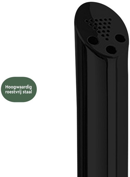 • De fraaie staande asbak van BRASQ draagt bij aan een schone en opgeruimde omgeving als het gaat om sigaretten of sigaren peuken. Deze rookpaal, of peukenzuil, heeft een luxueuze en moderne uitstraling en is gemaakt van geborsteld hoogwaardig RVS (Stainless Steel 304). Door de hoge mate van corrosiebestendigheid van dit materiaal kan hij weer en wind doorstaan. Met een hoogte van 92cm, en een doorsnede van 17 cm aan de onderkant en 8 cm aan de bovenkant, staat hij nooit in de weg. De BRASQ AT300 heeft een handig uitdrukvak om de sigaret te doven en 3 gaten om de peuk te deponeren.