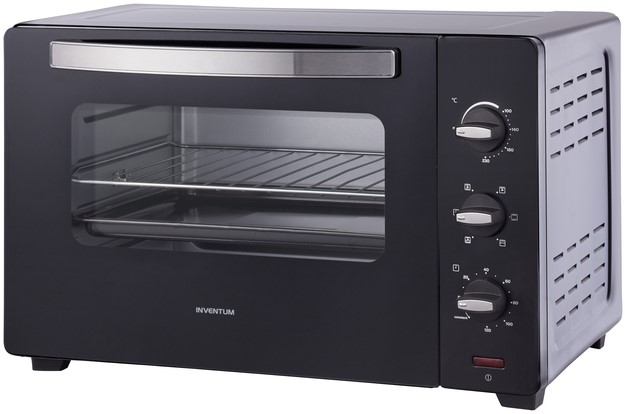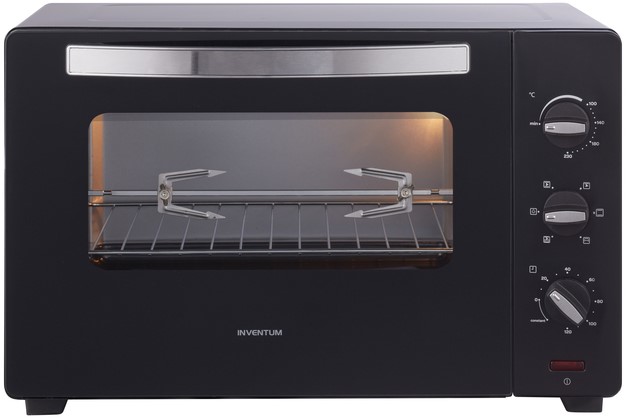 • De Inventum vrijstaande heteluchtoven OV457B heeft een netto inhoud van 45 liter. Dit model heeft 6 ovenprogramma's. Door de hetelucht is de temperatuur gelijkmatig verdeeld. Opwarmen gaat extra snel door de 4 verwarmingselelementen. Daarnaast is de oven voorzien van een timer. Het apparaat wordt standaard geleverd met een bakplaat, ovenrooster, kruimelplaat en een draaispit.