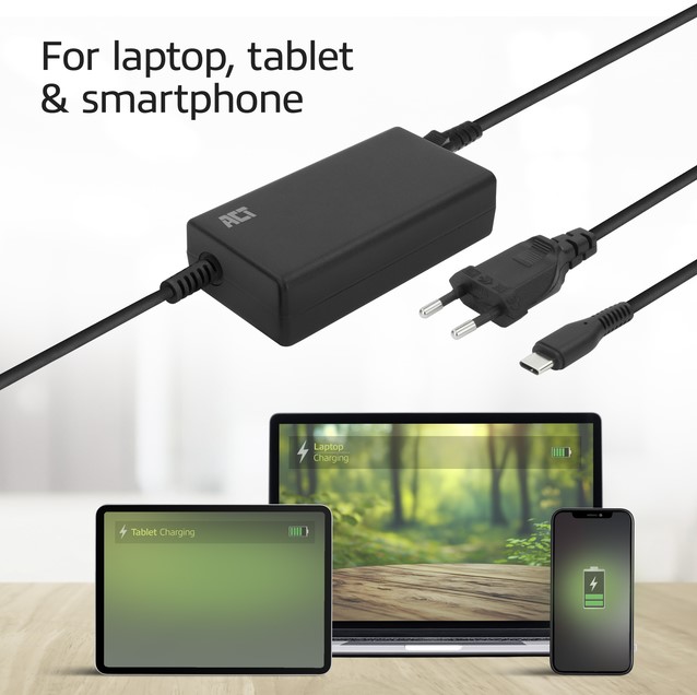 • Laptoplader 65W voor laptop met een USB-C-connector en Power Delivery-ondersteuning.