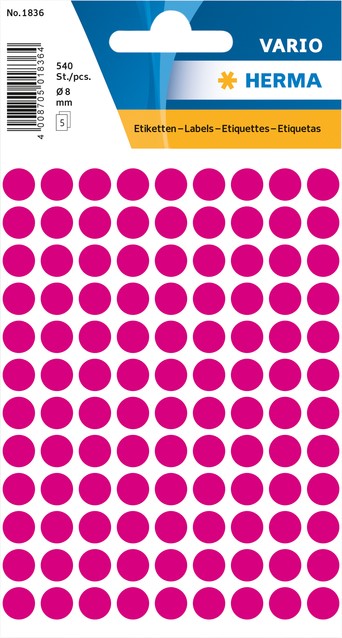 Etiket HERMA 1836 rond 8mm roze 540 stuks
