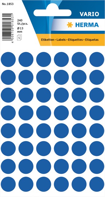 Etiket HERMA 1853 rond 13mm donkerblauw 240 etiketten
