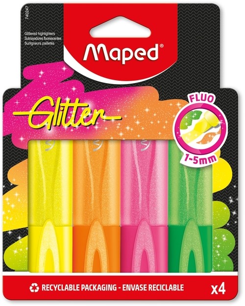 Markeerstift Maped Glitter set à 4 fluoriserende kleuren