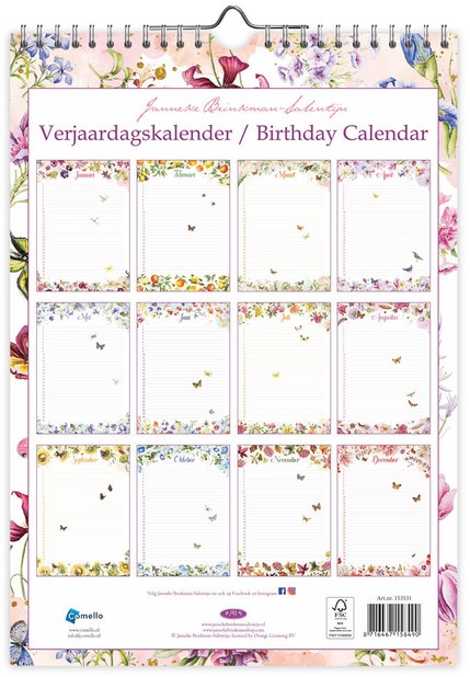Verjaardagskalender Janneke Brinkman Voorjaar A4