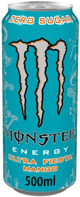 Ultra Fiesta viert de nachten die overgaan in ochtenden en de vrienden die we familie noemen. Zero Sugar Ultra Fiesta mixt de Juicy mango smaak in de Ultra waar we van houden, met een volle lading van de Monster Energy blend.