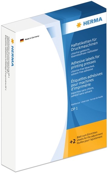 Zelfklevende, ronde etiketten Ø16mm voor het bedrukken met drukmachines, DP1, 54 vel / 10000 etiketten per verpakking · Millimeternauwkeurig op vellen met grijp- en aanlegrand · Ieder verpakking bevat 2 extra vellen voor het instellen van de machine · Niet geschikt voor PC printers
