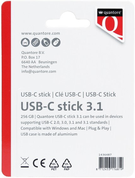 USB stick 3.1 Quantore USB-C 256GB zilver