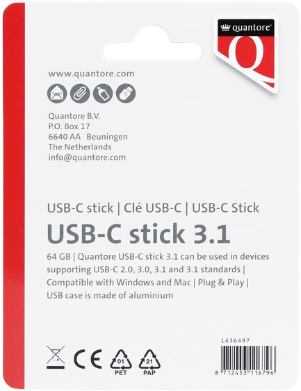 USB stick 3.1 Quantore USB-C 64GB zilver