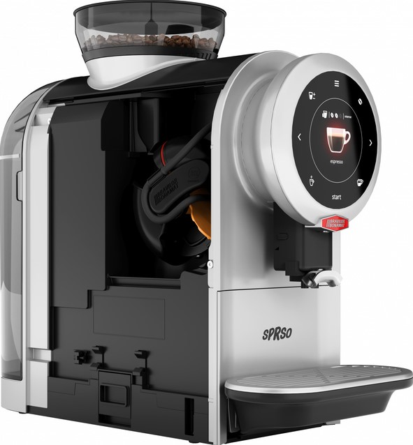• Op zoek naar de eenvoud van een consumentenmachine met de prestatie van een professionele koffiemachine? Dan is de Sprso precies wat u nodig heeft. De Sprso is klein, krachtig en stijlvol. Deze bean-to-cup machine is een echte eyecatcher en levert perfecte individuele kopjes ristretto, espresso, caffè crema en americano. De Sprso is het perfecte apparaat voor in vergaderruimten, wachtkamers of kleine kantoren. En door zijn compacte formaat voelt de Sprso zich net zo goed thuis op het keukenaanrecht.Producteigenschappen: