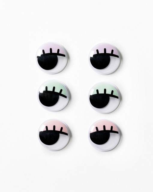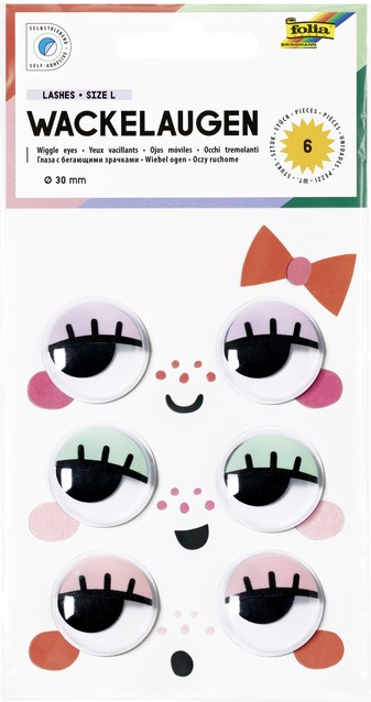 Wiebelogen Folia met wimpers 30mm set à 6 stuks assorti