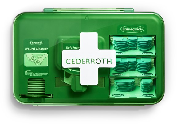 • Inhoud:1 Salvequick wondreiniger, 40 st. (REF 3227)1 Cederroth Soft Foam Bandage, 4,5 m (REF 51011010)2 Blue Detectable pleisters (REF 51030127)1 Blue Detectable Pleisters Vingertop/Normaal (REF 51030126)1 Navulsleutel