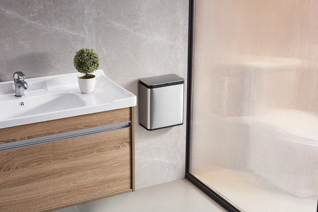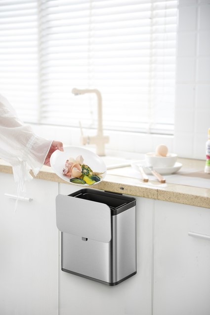 • Compact afvalbakje van geborsteld RVS voor GFT-afval. De kunststof binnenemmer heeft een inhoud van 7 liter. Makkelijk op te hangen aan een keukenkastdeurtje, tevens te bevestigen aan een muur of flexibel te plaatsen op het aanrecht. De twee manieren om het deksel te openen verhoogt de efficiëntie in gebruik.