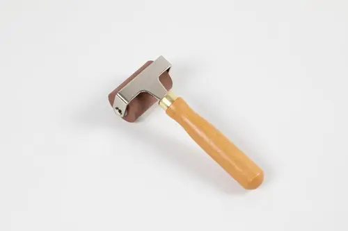 Hoogwaardige linoleumroller met stevige handgreep. Dankzij het massieve rubber is de roller ideaal om drukinkt uit te rollen voor linoleumprints enz.. . Rol dikke drukinkt in een lege verfbak uit tot een dunne, gelijkmatige laag. Daarna rolt u de inkt op een uitgesneden drukblok van linoleum of rubberRol heen en weer in verschillende richtingen, van de ene rand van het drukblok tot de andere Leg het te bedrukken papier op het drukblok en leg er vervolgens ter bescherming een stuk papier of karton op. Als u geen grafische pers hebt, kunt u de roller gebruiken als een goed alternatief voor kleinere afbeeldingenRol heen en weer met de linoleumroller bovenop het beschermende papier – verander van richting en rol van de ene rand van het drukblok eronder tot de andere totdat de inkt gelijkmatig is verdeeldVerwijder het beschermende papier, neem het bedrukte papier van het drukblok en laat het drogen. Reinig de roller in lauw water en droog af met een papieren handdoek of een theedoek. Het voordeel van het gebruik van een roller van massief rubber in plaats van een verfroller van schuim is dat de licht kleverige drukinkt zich in een dikke, gelijkmatige laag op de roller afzet, terwijl een schuimroller slechts een deel van de inkt absorbeert. Als u dus een gelijkmatig en perfect afgedrukte afbeelding wilt, raden we u aan om een massief rubberen roller te gebruiken.