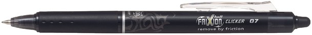 • De uitgumbare Frixion retractable, nu met een clip die de penpunt met een "klikindicator"in- en uitschuift.