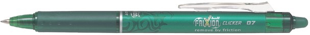 • De uitgumbare Frixion retractable, nu met een clip die de penpunt met een "klikindicator"in- en uitschuift.