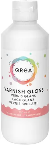 • Vernis Qrea glans – 250 mlBescherm je creatieve werk met de glansvernis van Qrea, een transparante lak die niet alleen een duurzame beschermlaag biedt, maar ook zorgt voor een mooie glanzende afwerking. Deze water gedragen vernis is veilig in gebruik en droogt transparant op, zonder het oorspronkelijke werk te beïnvloeden. Ideaal voor het beschermen van schilderijen en decoratieve objecten tegen vocht, UV-straling, stoten, krassen en schimmels. Bovendien maakt de vernis je werk watervast, zodat het langdurig mooi blijft. Verkrijgbaar in glans en mat, en geproduceerd in Nederland.Kenmerken: